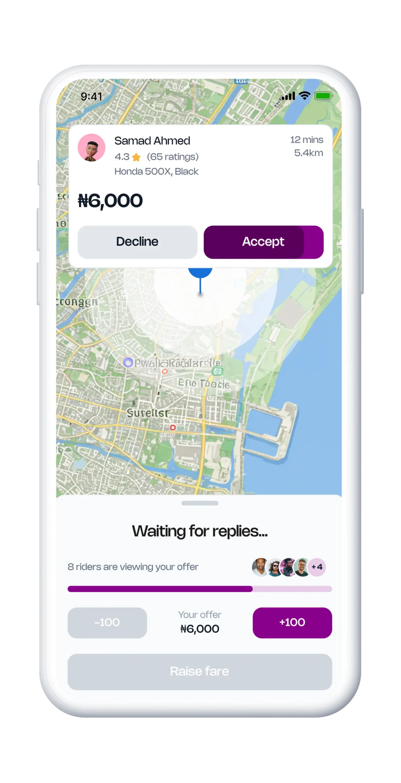 Find Riders, Negotiate Fare, Track Delivery, and Pay Seamlessly.