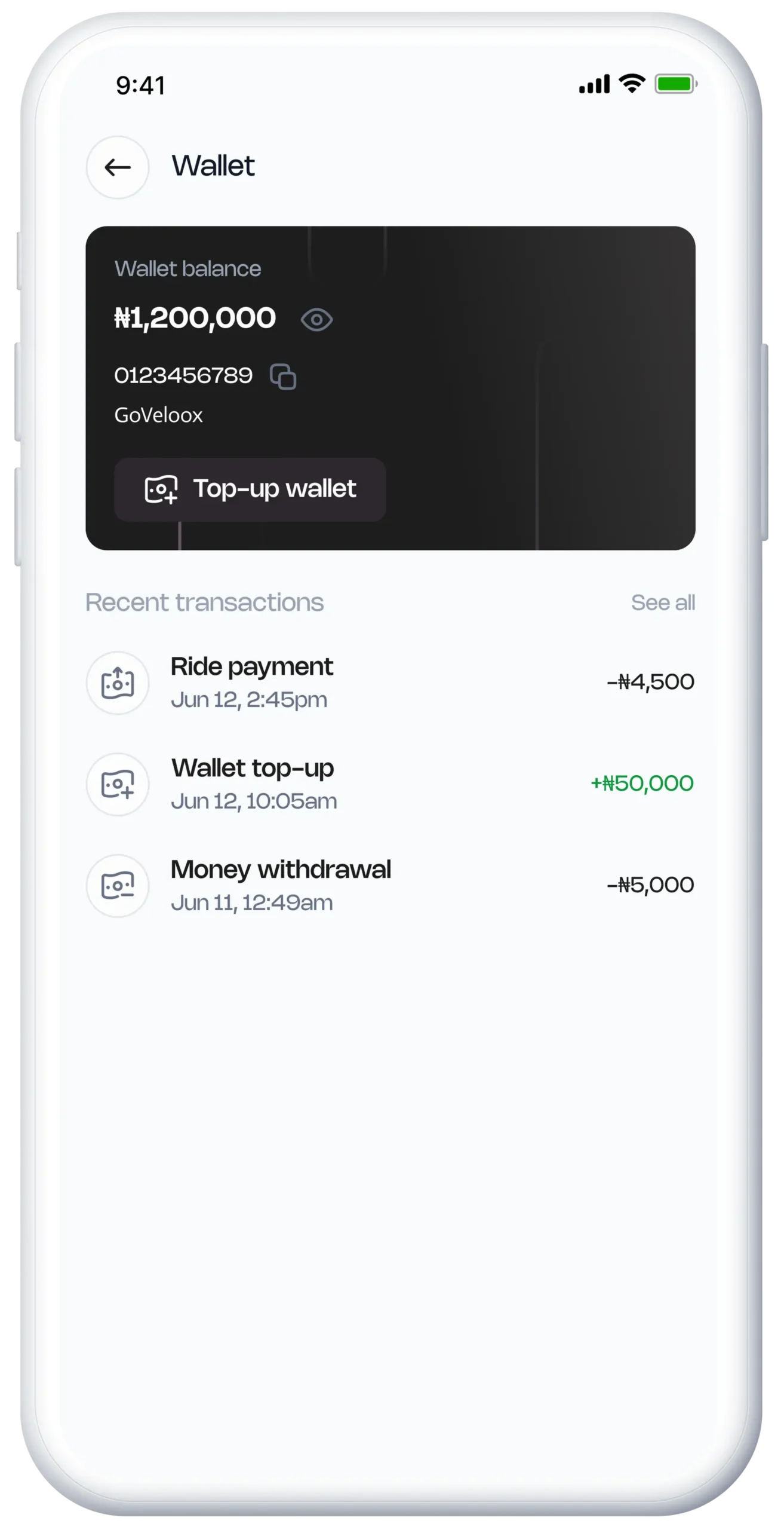 Send packages with ease, negotiate your delivery fee, choose from a pool of nearby riders, and watch your package’s journey with real-time tracking. Pay seamlessly through your dedicated GoVeloox bank account, and enjoy the assurance of safe, secure, and on-time deliveries, every single time.